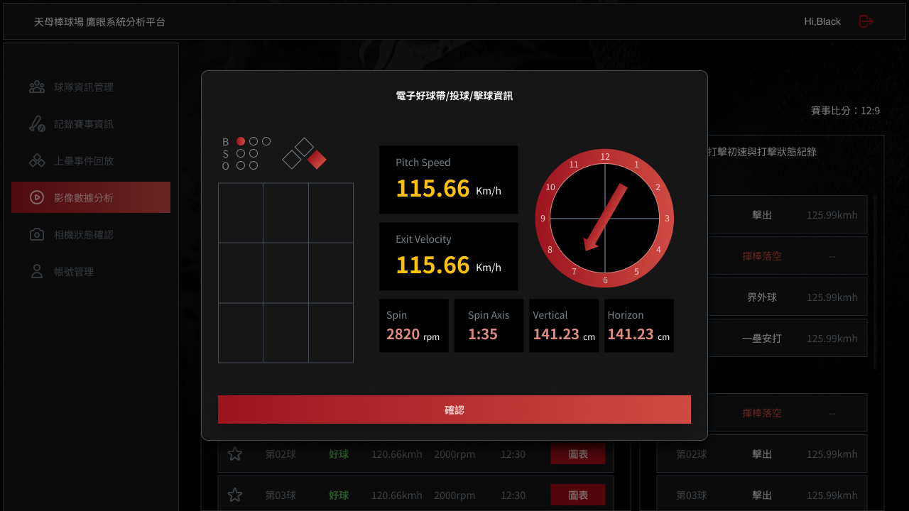 技術簡介 | 本計畫以「技術導入」、「數據應用」及「產業整合」三大方向推動鷹眼系統建置,促進棒球運動科學落地於職業場域。透過精準紀錄比賽與訓練過程中的運動表現數據,提升球隊戰術分析、選手發展與觀賽體驗,推動棒球科技應用產業化發展。 |